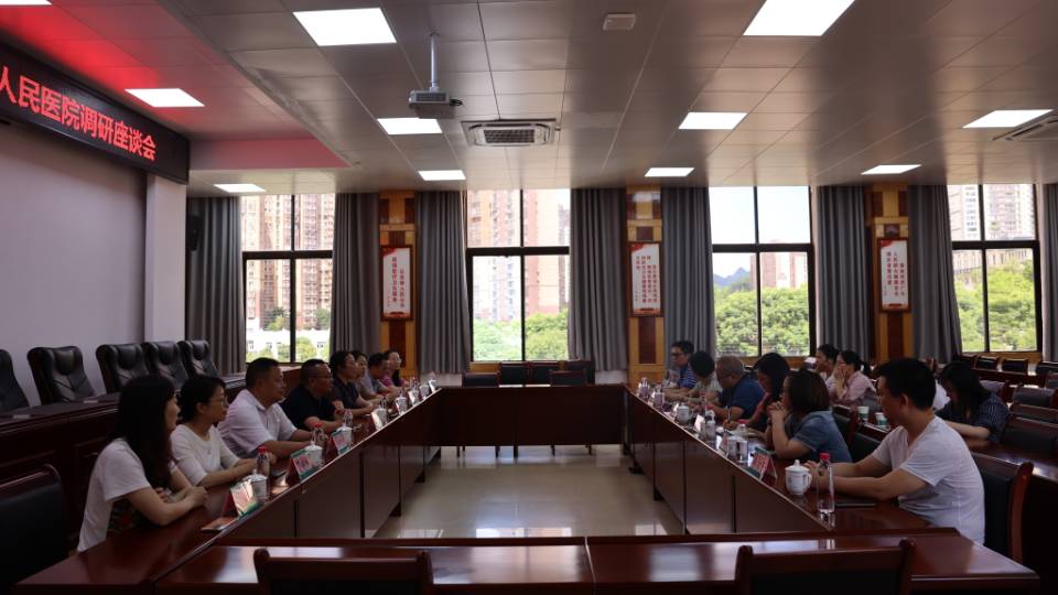 7月12日,公司党委书记张文辉带队一行8人到黔南州人民医院和黔东南州人民医院进行“访企拓岗”走访调研。黔南州人民医院经理吴志平,副经理潘科,公司员工办公室主任杨杰、人事科科长黄晓燕参加调研。