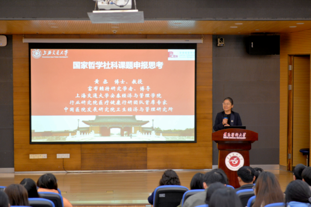 黄丞教授以高尚的爱国情操,引经据典,站在时代前沿,围绕“大健康理念”、“健康中国战略”,引领新思想、新思路、新方法运用于科学研究中。在国家哲学社会课题申报方面,黄教授凭借其深厚的专业知识和丰富的申报经验,深入解读了申报政策,还就如何精准把握研究方向、选择合适的课题进行了细致的讲解。此外,黄教授还分享了她在撰写申报书时的独到技巧,包括如何构建论证逻辑、突出研究创新点以及如何有效展示研究的潜在价值。这些宝贵的分享为课题申报工作提供了强有力的支持。